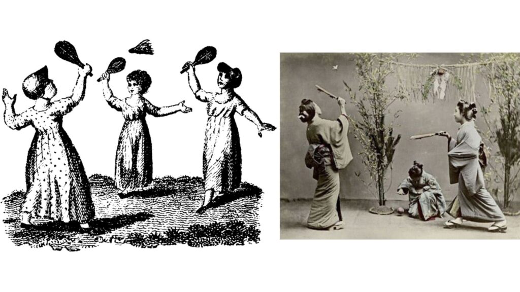 คริสต์ศตวรรษที่ 14 ชาวญี่ปุ่นได้มีการใช้ขนไก่ หรือขนนกเสียบผูกติดกับหัวไม้ และใช้ไม้ตีลูกขนไก่นั้น โดยไม้ที่ใช้ตีทำมาจากไม้กระดาน ตีลูกขนไก่ไปมานับว่าเป็นวิวัฒนาการในรูปลักษณ์ของการเล่นแบดมินตันที่ใกล้เคียงกับยุคปัจจุบันมากที่สุด โดยมีการใช้แร็กเกตตีลูกขนไก่แทนการใช้อวัยวะของร่างกาย
