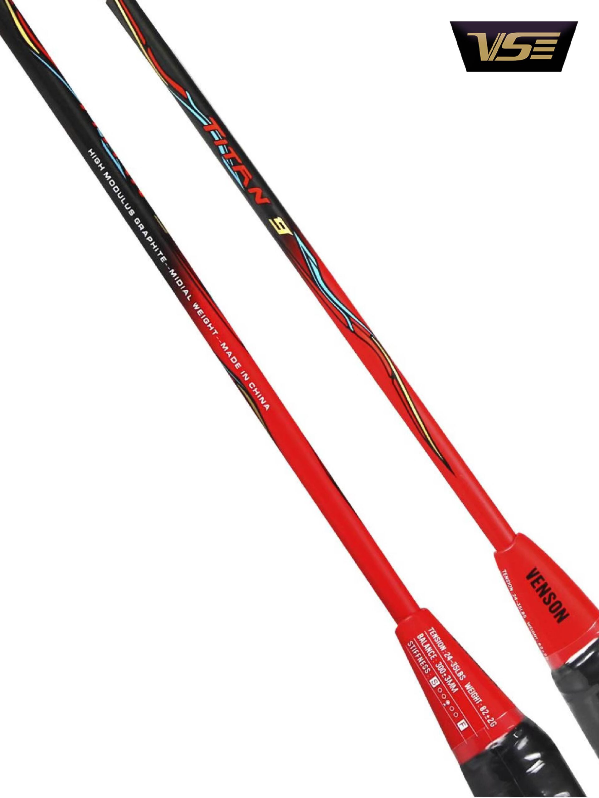 –Titan 9 หัวหนัก 300 ก้าน กลาง (8.8)น้ำหนัก 82 กรัม #ไม้รุ่นนี้มาในโทน สีแดงสดตัดดำ ดุดัน สมกับสเป็คของไม้ ใครที่เป็นสายทุบ บ้าพลัง แรงข้อมือดีๆ ไม้นี้ถือว่าควรจัดเลย ด้วยหัวไม้ที่หนักถึง 300 แอดรับรองตบทีเสียงสนั่นไปทั้งคอร์ทแน่นอน